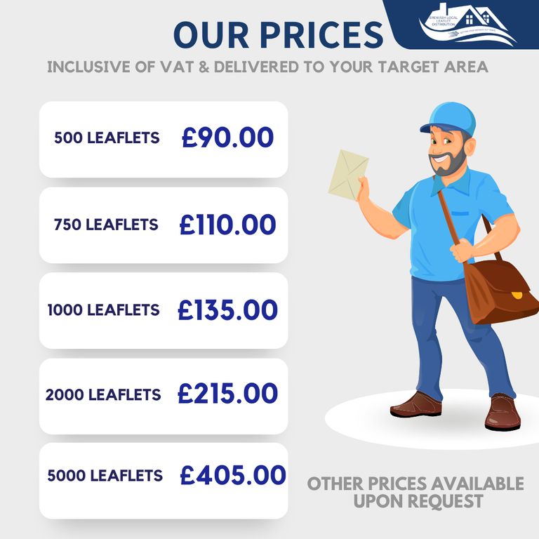 Our design prices are £45.00 per leaflet page. Printing prices are available upon request.